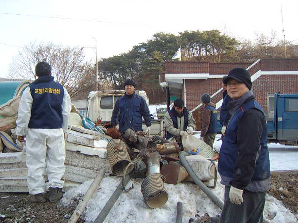 김기준 회장을 비롯한 회원들은 이날 고향방문을 하는 많은 출향인들을 위해 동네 입구 빙판길에 모래를 뿌렸고, 각 마을 도로 옆 또는 내천 주변 등의 쓰레기들을 말끔하게 청소해 1톤 트럭 2대 분량의 쓰레기를 수거했다.