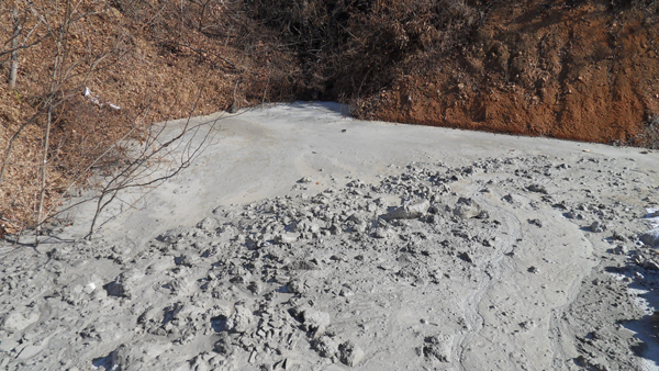 제보자 주민 전모 씨에 따르면 지난달 28~29일경에도 불법으로 폐기물이 투하됐고, 이를 증명하듯 최근에 일부 야적된 콘크리트 폐기물은 채 굳기도 전이어서, 손으로 만지자 반고체 상태의 콘크리트가 묻어나고 있었다.