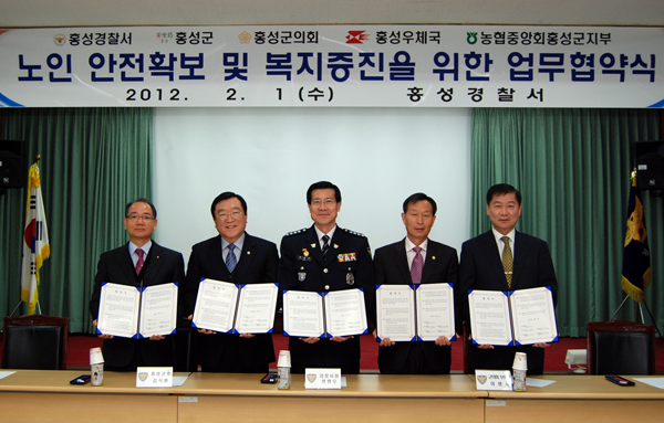 홍성경찰서는 2012년 1월 초부터 노인층과 고령화된 농촌 지역을 대상으로하는 범죄를 예방하고, 노인 교통안전과 치매노인· 독거노인 등 취약계층에 대한 보호활동을 전개하기 위하여 ‘노인 안전 종합 치안대책’을 수립하여 추진하던 중, 실효성 있는 대책을 추진하기 위해서는 지역사회의 협력이 필요하다는 판단하에 관련 기관과의 업무 협약을 추진하게 됐다.